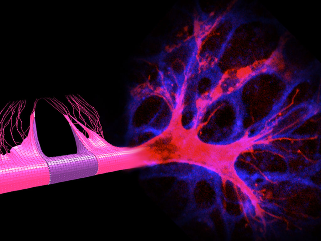 We design computer simulations to untangle how cells coordinate, compete and change shape to grow well-adapted tissue structures during development – and abnormal structures in disease.